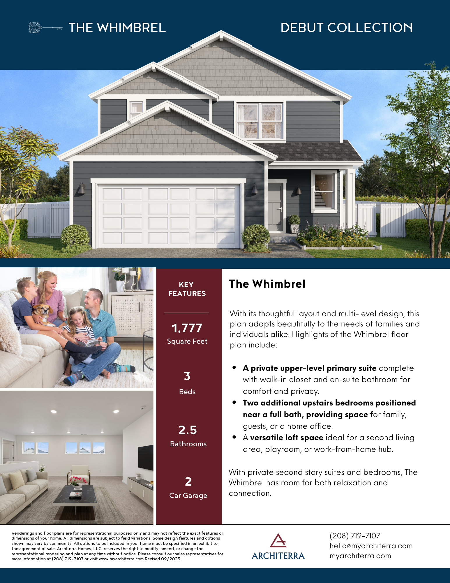 The Whimbrel is a spacious two-story home designed for both comfort and versatility. Featuring an open-concept main level, this plan includes a welcoming great room, modern kitchen, and dining space perfect for everyday living and entertaining. Upstairs, the private primary suite offers a generous walk-in closet and dual-sink bath, while three additional bedrooms and a versatile loft provide plenty of room for family, guests, or work-from-home needs. With thoughtful design, the Whimbrel combines functionality and style for today’s lifestyle.